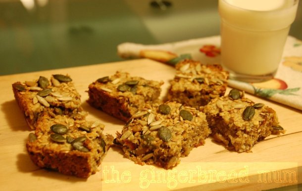 http://lifeaftertwobluelines.com/2012/08/19/babytoddler-recipe-oaty-cereal-bars/