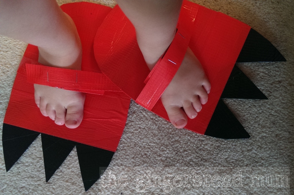 We made dinosaur feet (perfect for stomping) although Nicholas prefers wearing them as claws!