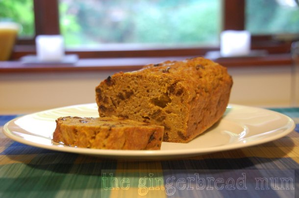 Hubby used a loaf tin instead of the square square tin (I wouldn’t have guessed) and lined not just the bottom but all the sides with baking paper so there was no chance of sticking. He also had to cook it quite a bit longer than the recipe said (about 15 minutes longer); just keep doing the wobble test!