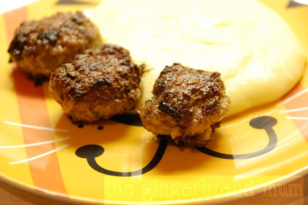 These are mini lamb burgers for little pudgy fingers to pick up and devour, but just make them bigger and cook them a little longer for bigger people.