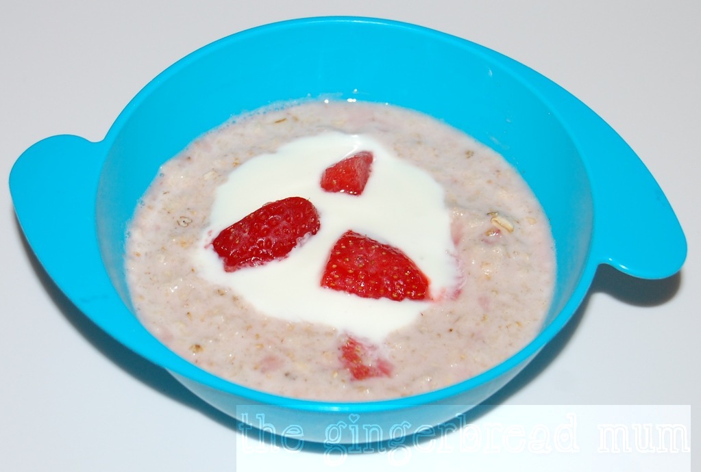 While traditionally porridge is made from oats, water and salt, I always use milk for its calcium content and some kind of sweetener, usually fruit or a little bit of honey (for when babies are more than a year old).